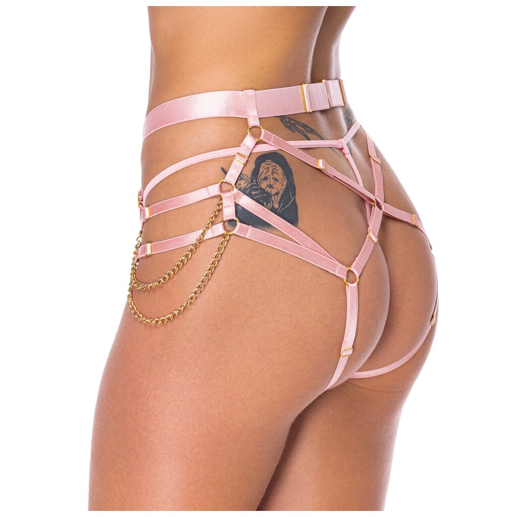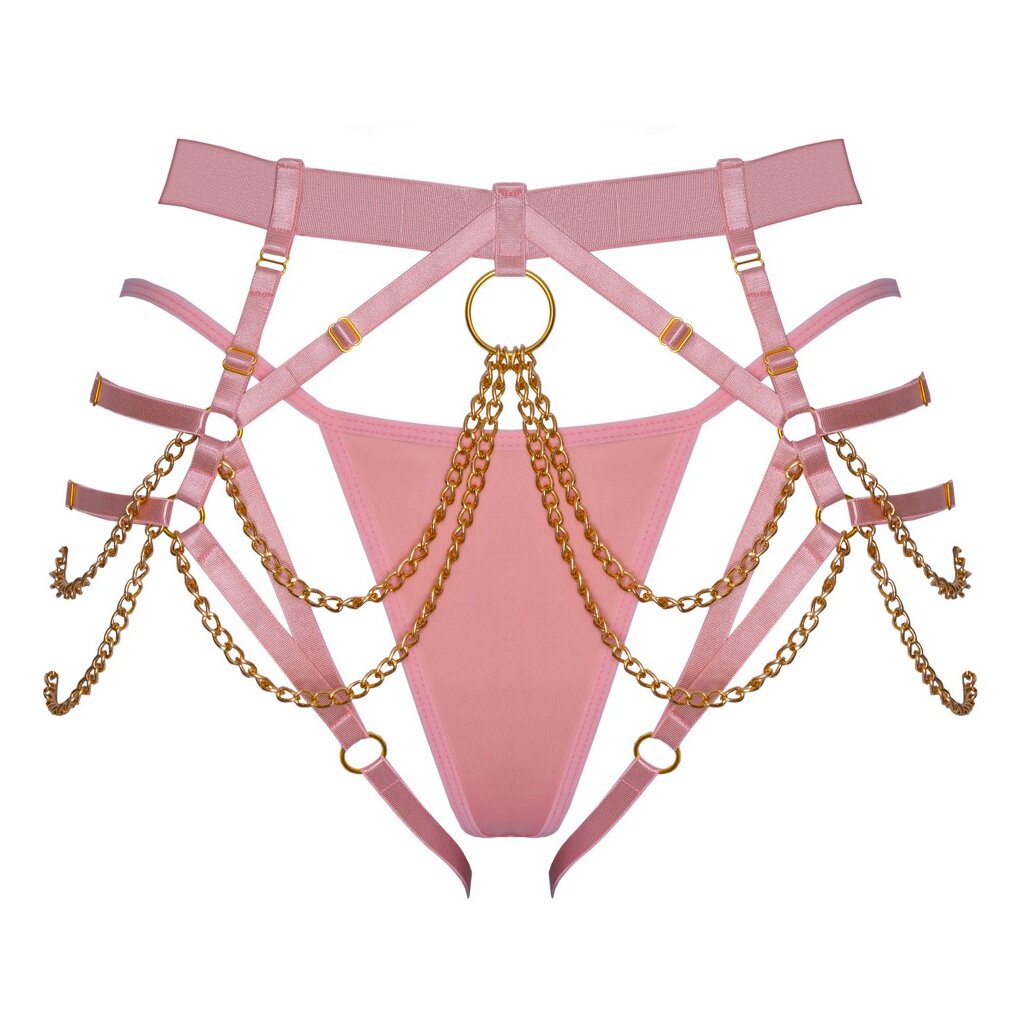Le somptueux string harnais de Bad Kitty allie raffinement, sensualité et audace. Sa teinte rosée satinée et ses accessoires dorés subliment les courbes avec élégance, tandis que les chaînes légères à l’avant et sur les côtés ajoutent une touche de glamour et de mouvement.