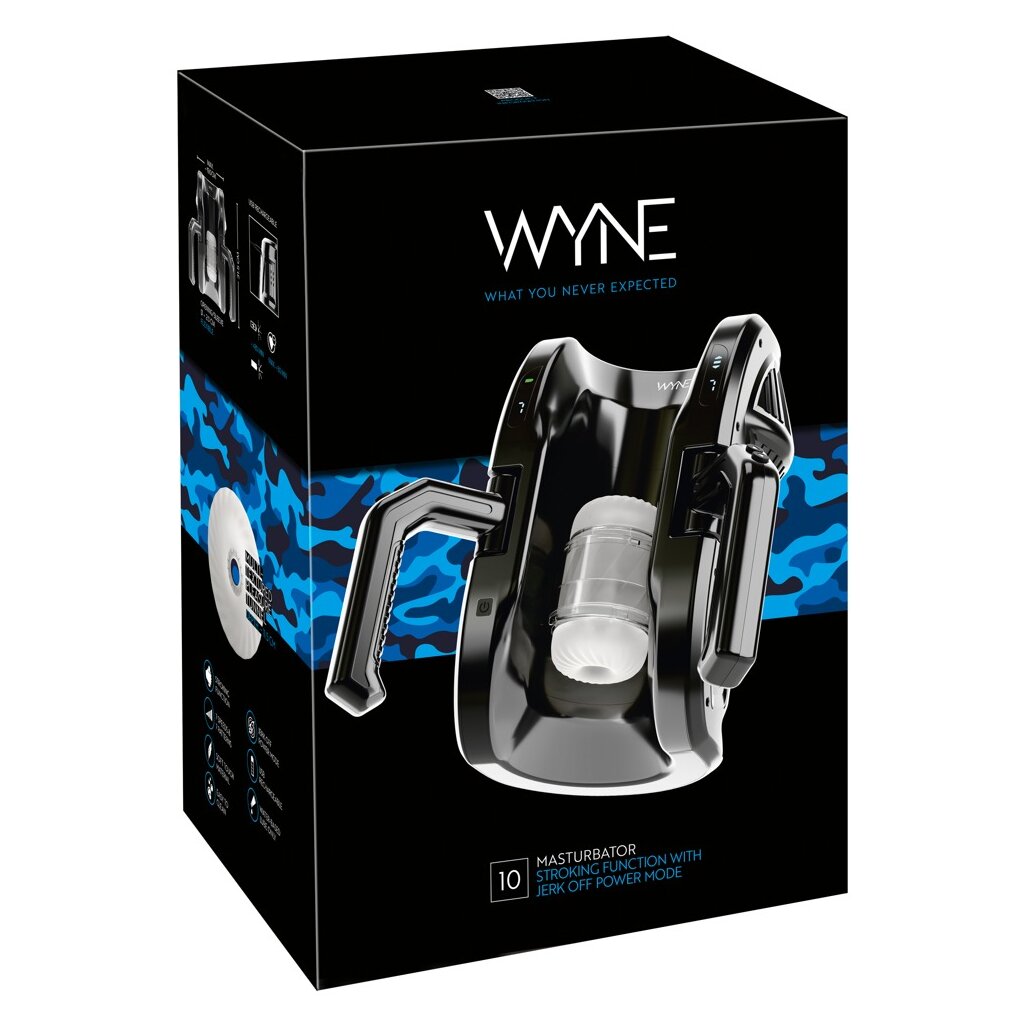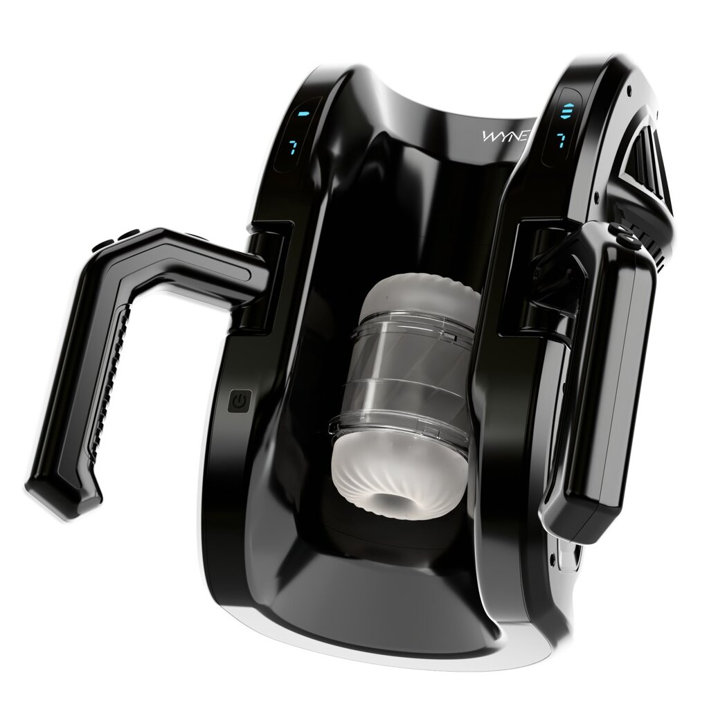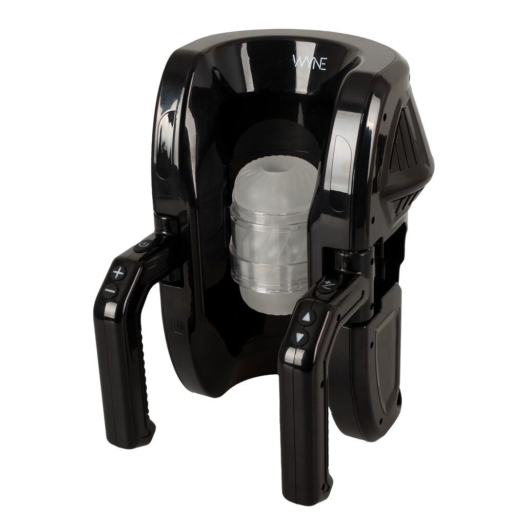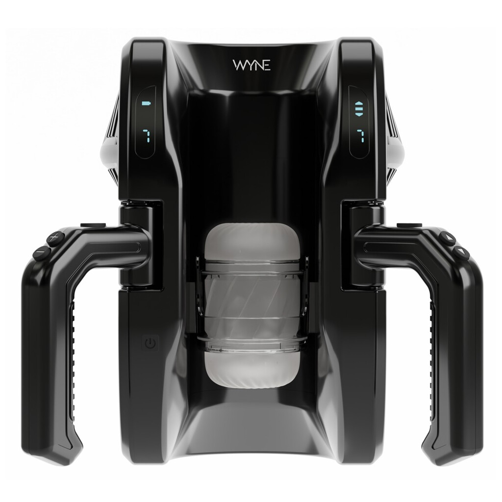 Leistungsstarker Masturbator 10 von WYNE, der den Penis in der sich Auf-und-Ab-bewegenden Stroker-Sleeve intensiv massiert und verwöhnt – über die gesamte Länge bis 28 cm. Die praktischen Griffe an den Seiten bieten dabei maximalen Nutzungskomfort und eine super einfache Handhabung. Vollautomatischer Komfort-Handjob ohne müde Hände!