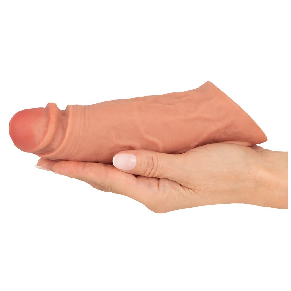 Fabriqué en silicone liquide ultra-doux avec des veines fines et un gland détaillé, le manchon pénien a un aspect très réaliste et est tout aussi réaliste et doux au toucher. Le manchon en silicone extensible s'enfile simplement sur le pénis. Le manchon doux et soyeux est élastique sur tout son pourtour et s'adapte parfaitement au pénis. Son ajustement agréablement serré peut fournir un soutien optimal pour une érection. L'anneau testiculaire extensible assure un ajustement ferme et sûr sans glisser.