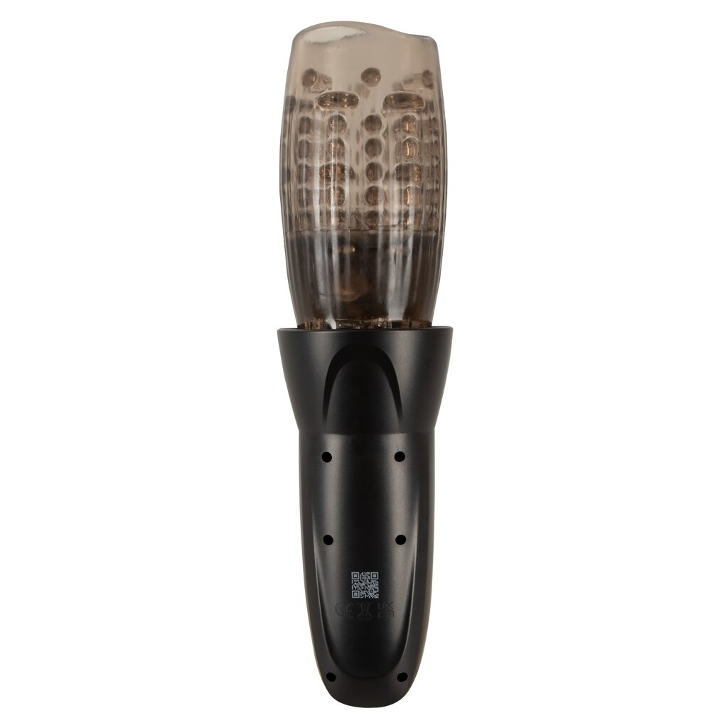 Le masturbateur rotatif pratique avec fonction vibration et poussée de STROKER dorlote le pénis tout autour, de manière entièrement automatique ! La coupelle souple transparente élastique masse le pénis grâce à ses picots et lamelles intérieurs souples et flexibles. Stimule avec de puissants mouvements de va-et-vient et des vibrations pénétrantes. Du pur plaisir sur simple pression d'un bouton !