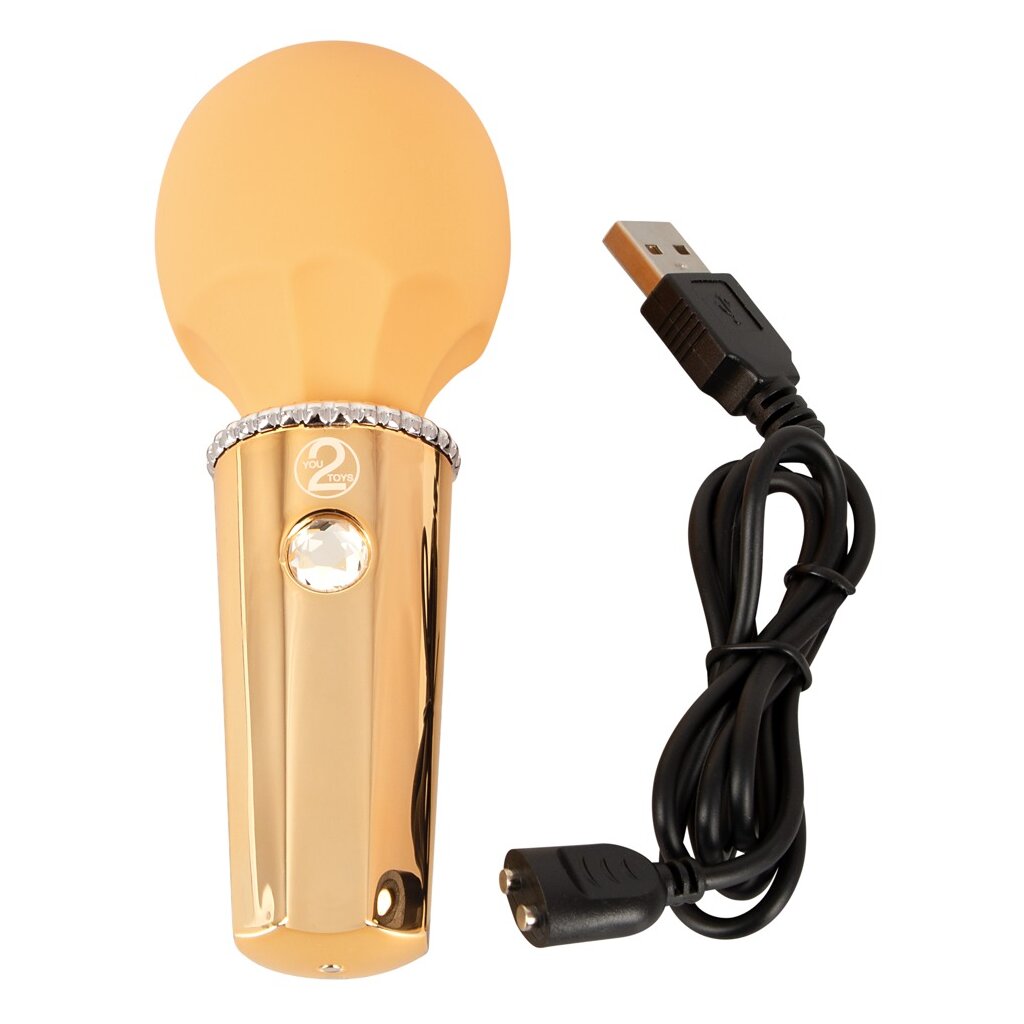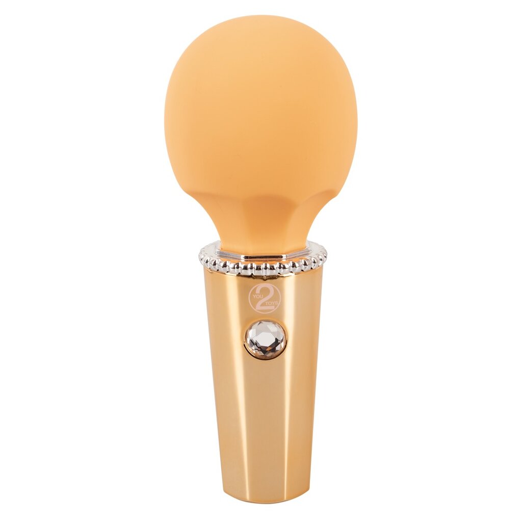 Small & compact massage wand Mini Wand Mango from You2Toys in a fruity, fresh sorbet colour and elegant metallic look with a sparkling glitter stone as a control button. With its flexible, silky soft massage head, it is suitable for both long massages and precise stimulation.