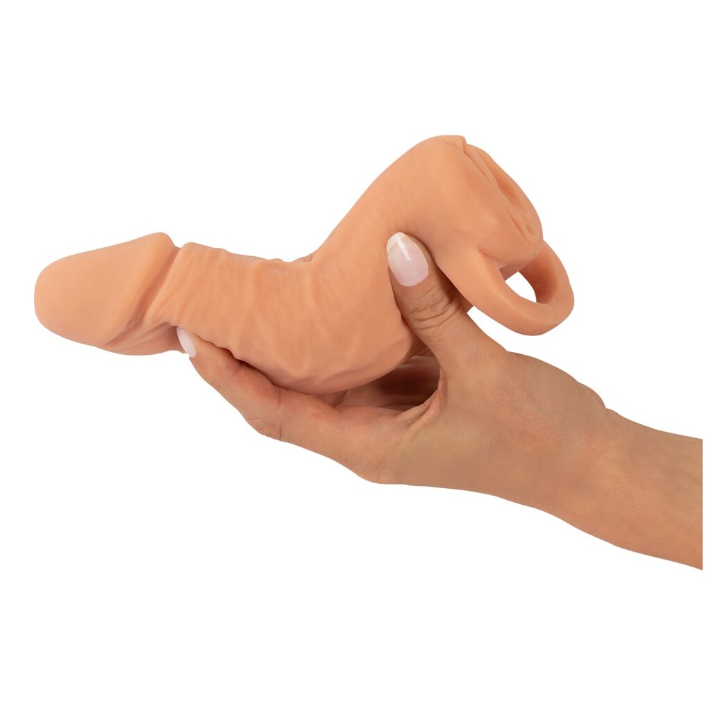 Der 2in1 Extension + Masturbator MITTEL von Nature Skin kombiniert einen Penis-Sleeve zur Verlängerung/Verdickung mit einem Masturbator in einem Gerät. Aufregend realistisches Design an der Außenseite mit vaginaler Öffnung und geäderter Penishülle mit ausgeprägter Eichel. Die Innenseite hat eine intensive, authentisch stimulierende Textur für die perfekte Penismassage bei Handjobs und Spaß zu zweit. Der sehr dehnbare Hodenring sorgt für aufregenden Halt beim Masturbieren und für sicheren Halt beim erfüllenden Sex.