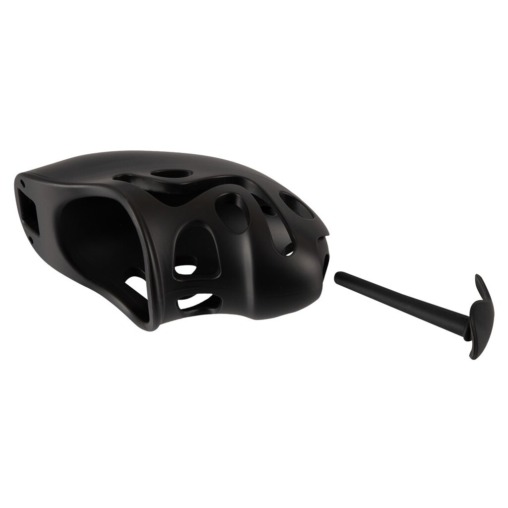 Firm, anatomically curved penis cage from You2Toys for unparalleled comfort during forced abstinence! Includes 3 interchangeable, ergonomically shaped testicle rings for a secure, escape-proof fit. The penis cage also features a solid, flexible silicone dilator for additional urethral stimulation, which can also be removed. Of course, the cage can be locked with the included metal padlock and key. However, thanks to the partially open design, the wearer can still shower or bathe without any problems and (without the dilator) urinate. This means that the penis cage can also be used for longer periods of pleasurable confinement.