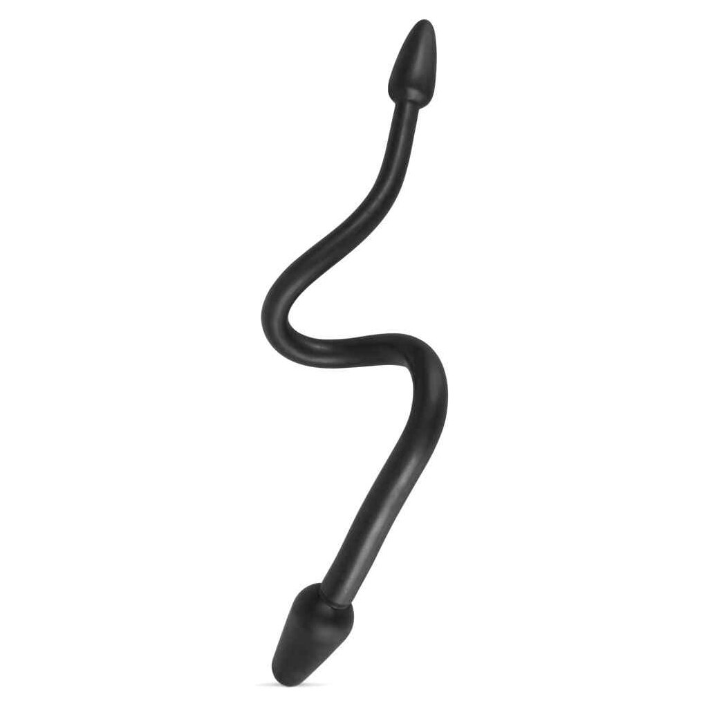 Doppeldildo für mehr Spaß alleine oder zu zweit! Biegsamer Doppeldildo mit Plug an jedem Ende. Für Solospiele vaginal und zugleich anal einführen, für Spiele zu zweit gönnt sich jede/r einen der Plugs. Schön gleitfreudige Oberfläche. Schwarz.