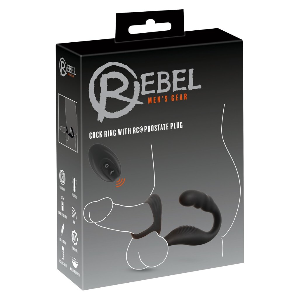 The Cock Ring with RC Prostate Plug from Rebel combines a gripping penis/testicle harness with a perineum and prostate vibrator. For intense all-round pampering on and in your backside!
