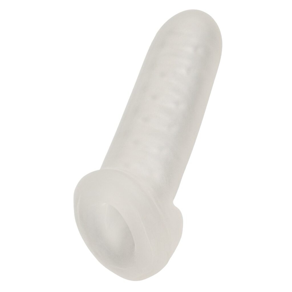 Mit einer Gesamtlänge von 20 cm, einer Einführtiefe von 18 cm sowie einem Außen-Durchmesser von 5,4 cm bietet die Sleeve großzügige Dimensionen. Der Innen-Durchmesser der Hülle beträgt 2,6 cm und ist stark dehnbar, ebenso wie der Hodenring mit etwa 1 cm Durchmesser. Ein Plus an Vergnügen für mehr Lust, Ausdauer und Fülle.