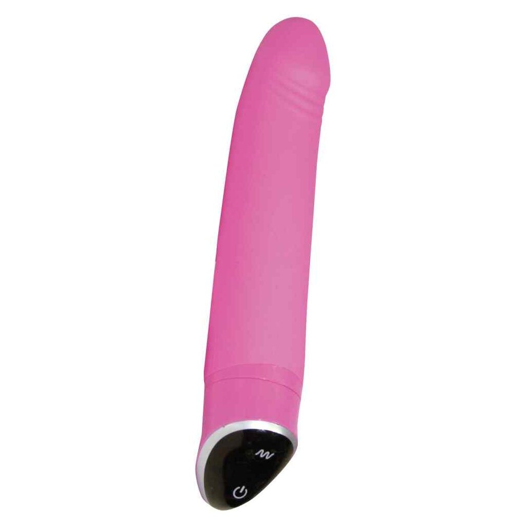 Für pure Lustwellen! Leicht gebogener Vibrator mit ausgeprägten Peniskopf. Die 7 Vibrationsstufen sind per Knopfdruck steuerbar. 22 cm lang, Ø 2,5-3,8 cm. Silikon, ABS. Batterien bitte extra bestellen: 2 x AA.
