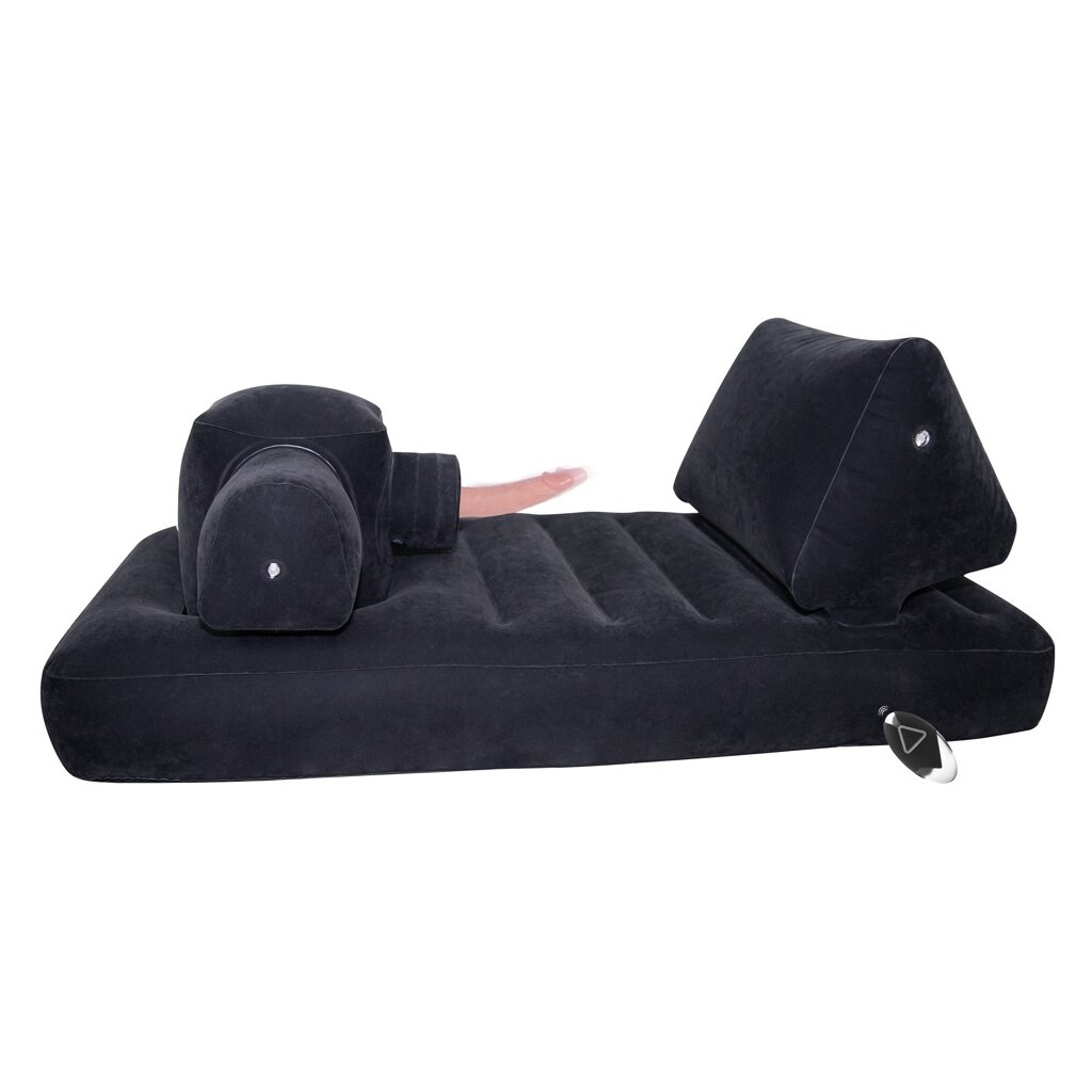 Le Velvet Luxury Bed exclusif est gonflé sans effort à l'aide de la pompe à air automatique incluse. En un clin d'œil, il se déploie en une chaise longue relaxante dotée d'un large coussin dorsal de soutien. Le module gonflable avec l'unité de commande, le dispositif de poussée et le repose-jambes confortable est fermement placé dans l'ouverture à l'extrémité du pied. L'un des deux vibrateurs fournis est ensuite inséré dans le dispositif de poussée.
