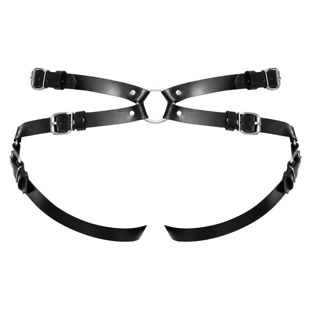 Vielfach verstellbarer Strap-on-Hüftgurt aus Leder von ZADO. Er ist universell benutzbar mit vielen Dildos und Vibratoren, die einen Saug- oder Standfuß besitzen. Dazu einfach die Druckknöpfe in der Front öffnen und einen Dildo/Vibrator mithilfe der beiden Frontringe (Ø 4 cm und 5 cm) einsetzen. Alle Gurtriemen sind mit Schnallenverschlüssen für perfekten festen Sitz verstellbar.