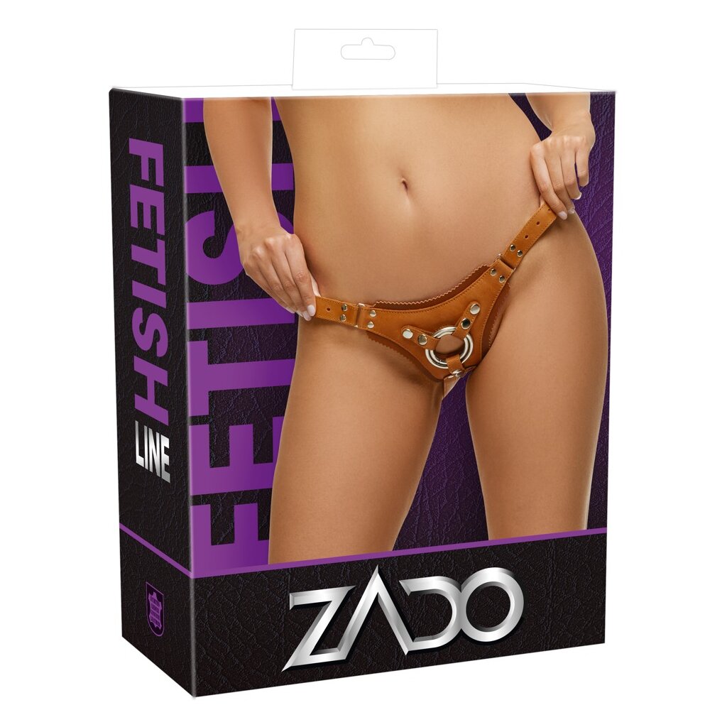 Strap-On-Jock von ZADO aus Glattleder im typischen Naturlook mit silberfarbenen Metalldetails. Doppellagig gearbeitet und mit leicht gepolstertem Rücken für hohen Tragekomfort. Die Ränder sind sorgfältig vernäht. Das Naturleder ist nicht gefärbt/gewachst und kann mit der Zeit eine schöne Patina entwickeln