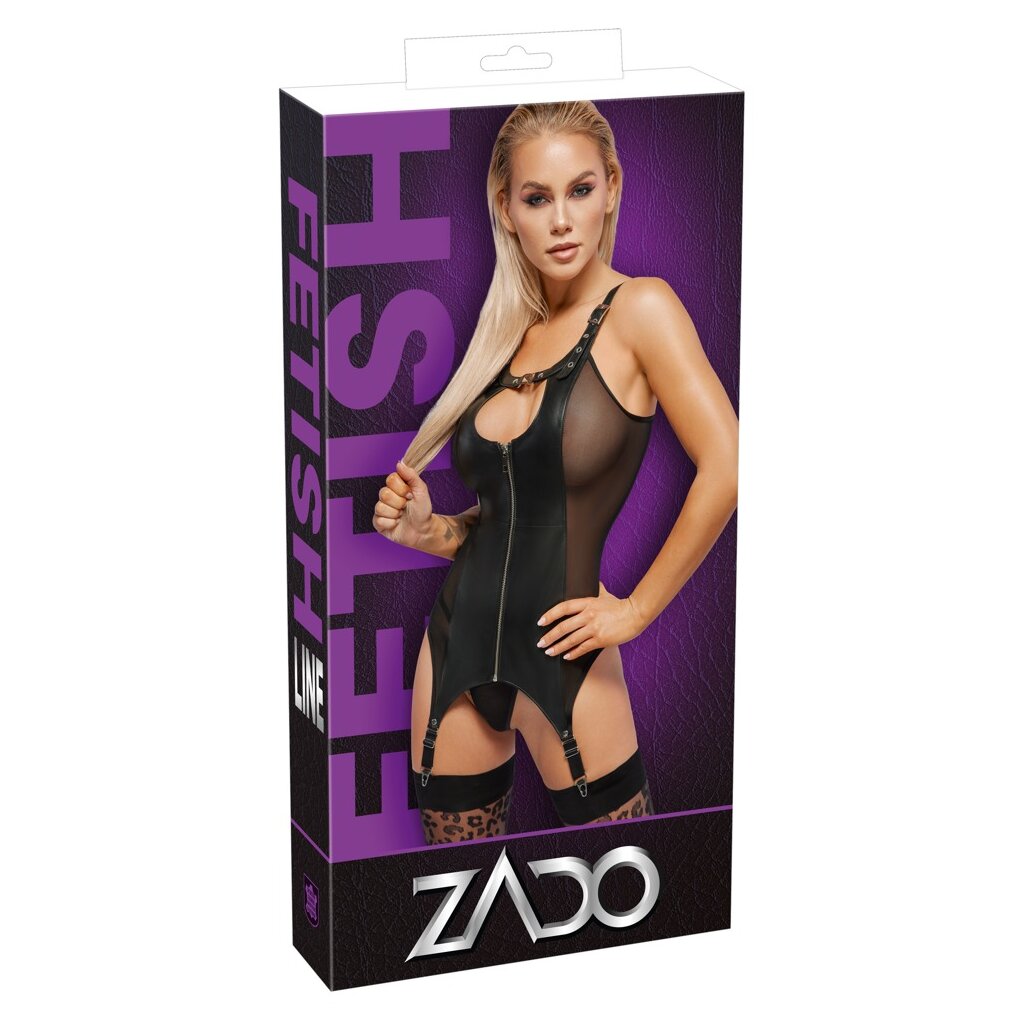 Discover the seductive side of yourself with this stunning suspender top made of soft lamb nappa and transparent powernet from ZADO. The full-length zipper at the front and the cut-out at the neckline with an elegant decorative clasp give you a sensual look that will attract everyone's attention. The buckle straps and suspender straps are individually adjustable to perfectly accentuate your curves. The suspender shirt is made of high-quality leather (lamb, chrome-free tanned), metal and powernet (90% polyester, 10% elastane) for a comfortable fit and an accentuating fit. Immerse yourself in the world of seduction and add this exquisite suspender shirt from ZADO to your lingerie collection. A must-have for every self-confident woman!