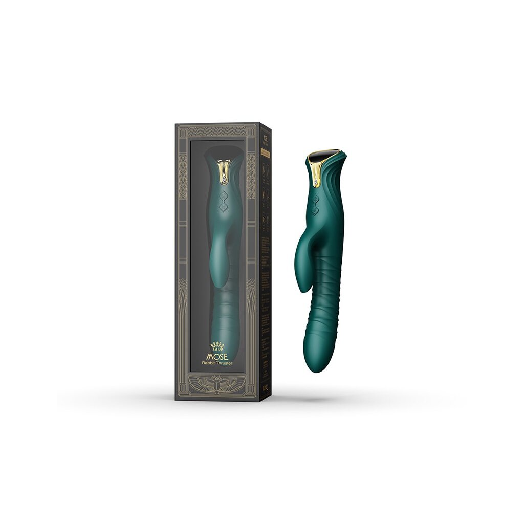 Vivez des moments inoubliables de plaisir et de passion avec le vibromasseur ZALO - Mose - Thrusting Rabbit en vert. Ce vibromasseur Rabbit innovant de la série ZALO Legend combine un design égyptien ancien et une technologie de pointe pour un plaisir ultime. Mose, le premier vibromasseur Rabbit à double stimulation de ZALO, s'inspire de Thoutmosis, le dieu de la sagesse, et fascine par son thème égyptien ancien. La technologie PowerThrust assure une stimulation interne intense, tandis que Moïse peut s'étendre jusqu'à 15 mm et fournir jusqu'à 8 coups par seconde pour un maximum de plaisir. La stimulation directe du point G est assurée par un moteur soigneusement placé à l'extrémité de la tige, tandis que le moteur externe masse le clitoris avec de puissantes vibrations. Le réglage indépendant de la température de chauffage de 42° Celsius offre un confort supplémentaire, et l'écran à la base permet de contrôler facilement les fonctions et l'intensité. Orné d'un cristal, Mose respire le luxe. Avec une longueur d'introduction de 144 mm et une largeur de 36,5 mm, Mose s'adapte parfaitement à tes besoins. Le temps de charge est de 120 minutes seulement pour une durée d'utilisation de 120 minutes également. Plonge dans le monde du plaisir avec le vibromasseur ZALO - Mose - Thrusting Rabbit et vis des moments forts incomparables ! Offre-toi ce jouet luxueux et découvre de nouvelles dimensions de plaisir et de passion !