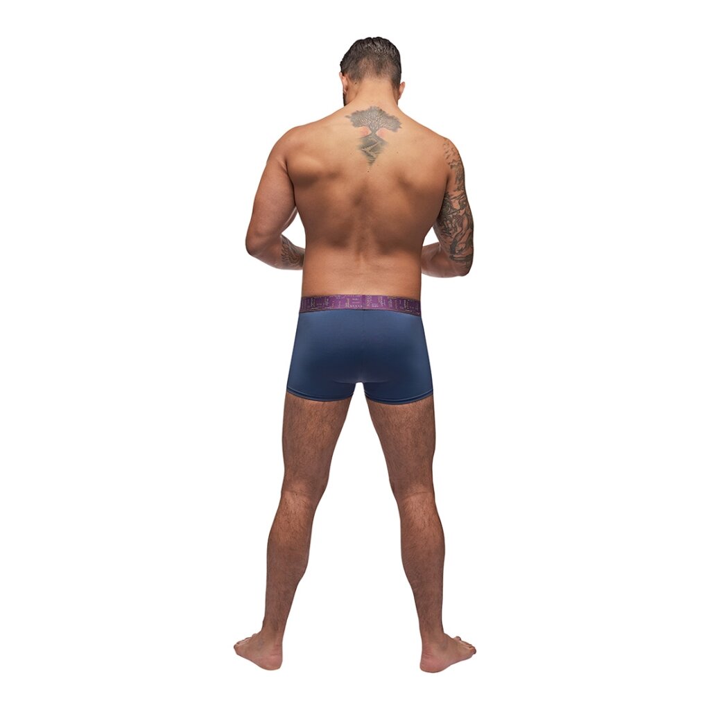 Dieses Modell aus der Avant-Garde-Kollektion von Male Power umfasst: Eine Enhancer-Short mit einer stützenden, verstärkenden Tasche, einer seidig glatten, luxuriösen Oberfläche und einem innovativen, mit Collage-Text versehenen Markenbund. Größe XL / Materialzusammensetzung: 87% Nylon 13% Elasthan
